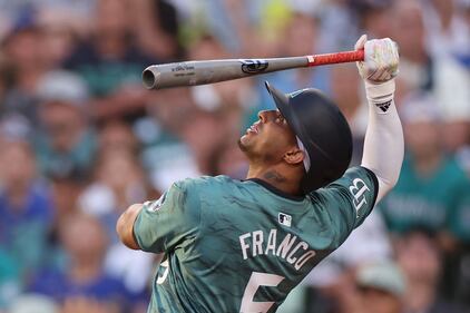 2023 All-Star Game: Wander Franco watches the ball during his at-bat during the 93rd All-Star Game. (Steph Chambers/Getty Images)
