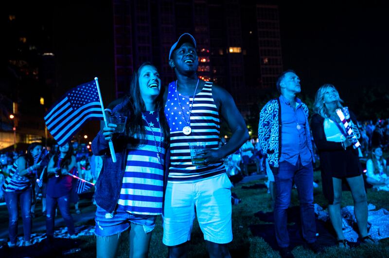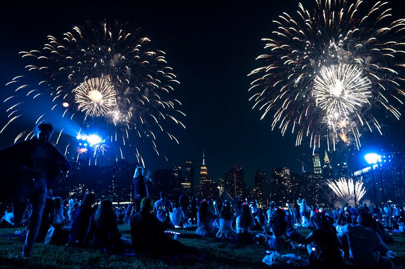 Fourth of July 2021 Spectators watch as fireworks are launched over the East River and the Empire State Building during the Macy's 4th of July Fireworks show, Sunday, July 4, 2021, in the Queens borough of the city of New York. (AP Photo/John Minchillo) (John Minchillo/AP)