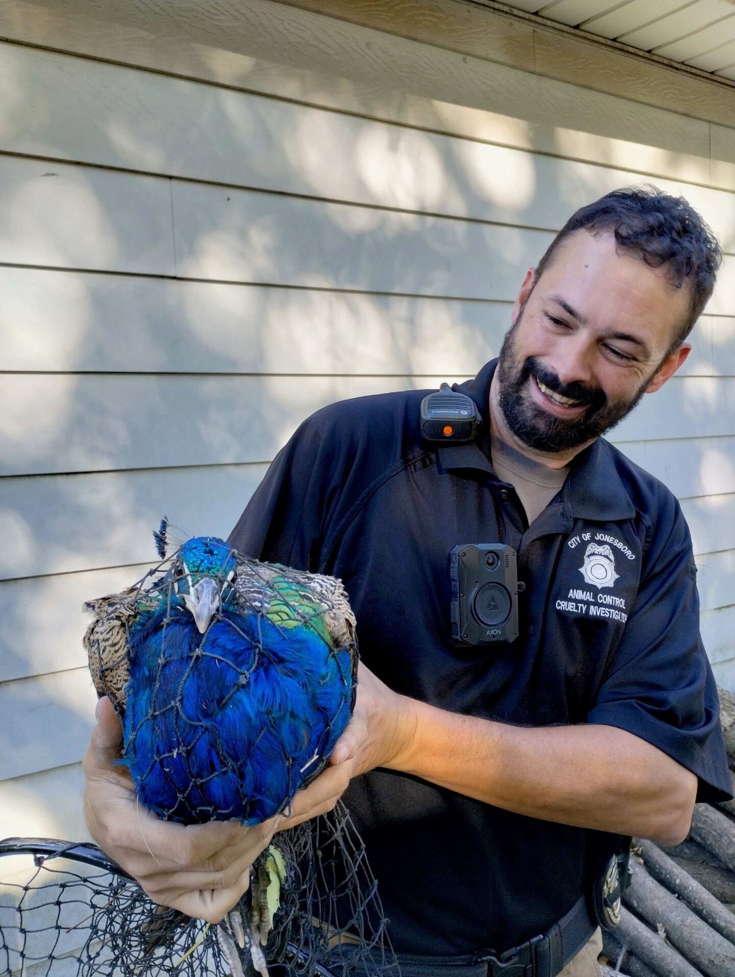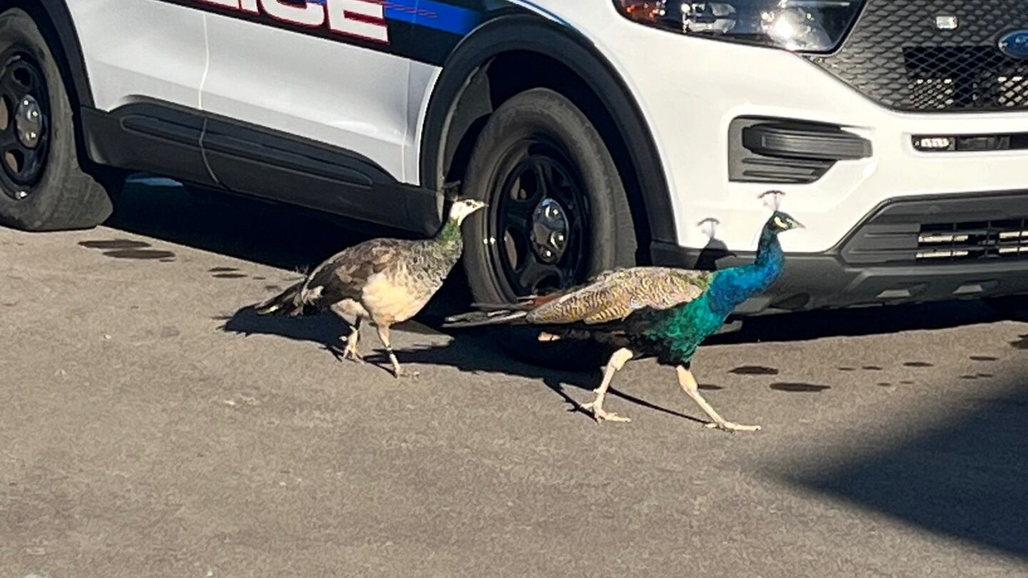 In a news release, the Jonesboro Police Department said its officers were called to corral some colorful friends after peacocks were found in the parking lot of a medispa. Police said their officers “quacked” the case wide open when they arrived and saw the adult birds walking near the road.