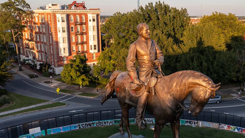 Robert E. Lee statue removed from Virginia capital The statue of Confederate Gen. Robert E. Lee is bathed in the late sun on Monument Avenue in Richmond, Va., Monday, Sept. 6, 2021. The statue is scheduled to be removed by the state Wednesday, Sept. 8 after a ruling by the Virginia Supreme Court. (Steve Helber/AP Photo)