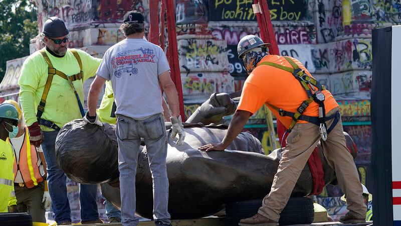 Robert E. Lee statue removed from Virginia capital The public watch crews work to remove one of the country's largest remaining monuments to the Confederacy, a towering statue of Confederate General Robert E. Lee on Monument Avenue, Wednesday, Sept. 8, 2021, in Richmond, Va. (Steve Helber/AP Photo, Pool)