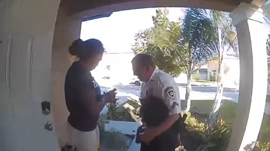 In the video, taken from body camera footage and the home’s Ring Doorbell camera, the woman calls for her son to ask if he had called police. He answers that he had.