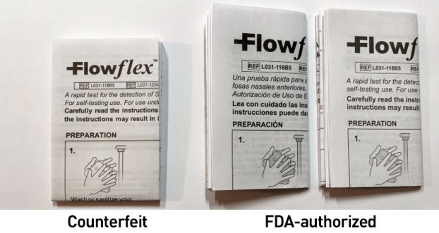 The counterfeit FlowFlex tests are separate from the previously announced unauthorized ACON Biotech Flowflex COVID-19 tests. In March, the FDA warned people not to use certain tests packaged in a dark blue box, as we reported at the time.