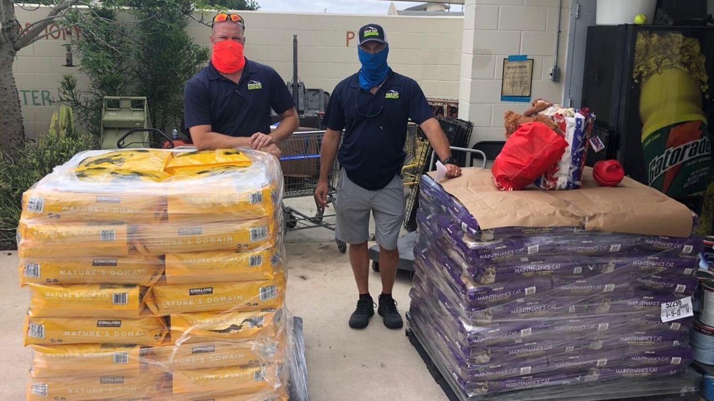 Jeffrey Hewitt, the president of Gold Key Roofing, and Trevor Switzer, the general manager, went to Costco on Friday and bought two pallets of dog and cat food to donate to the pantry.
