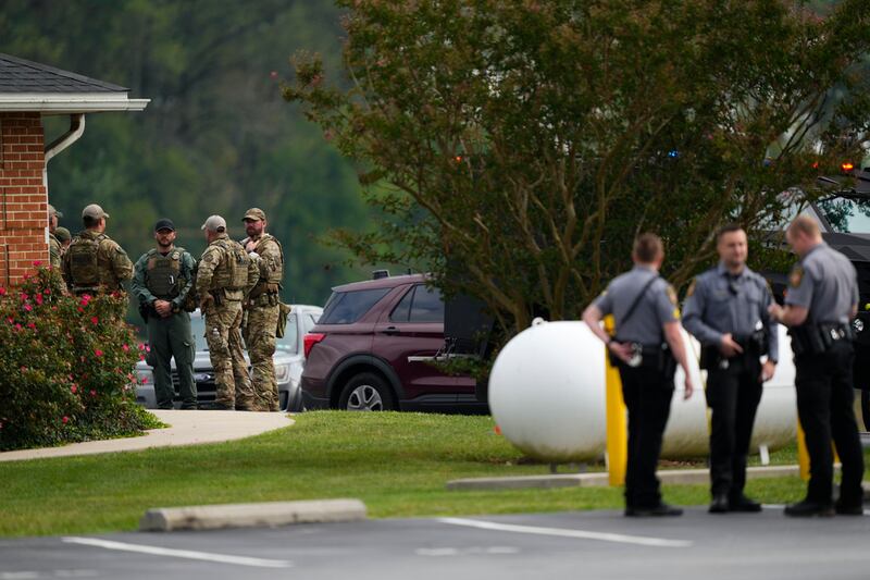 Captured PA State Troopers and other law enforcement officers are on the scene in Nantmeal Village as the search for escaped convict Danelo Cavalcante moved to northern Chester County Sunday, Sept. 10, 2023. (Tom Gralish/The Philadelphia Inquirer via AP) (Tom Gralish/AP)