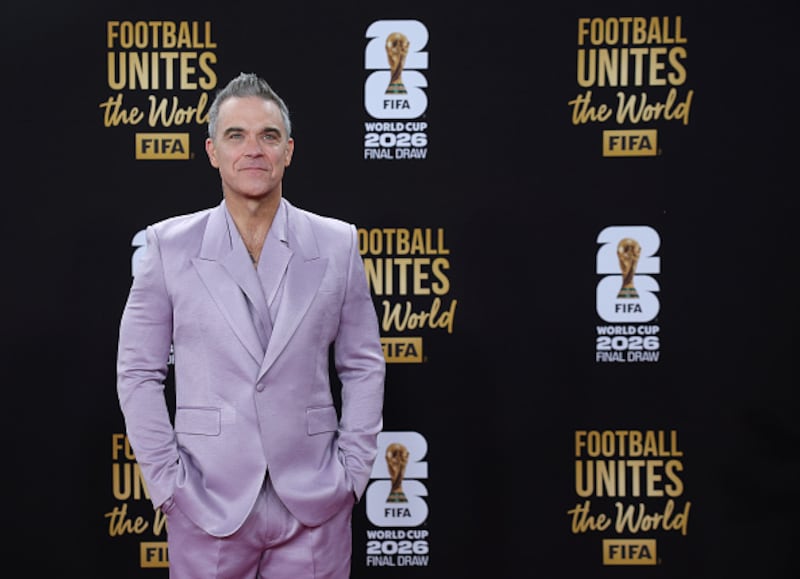 FIFA World Cup 2026 Official Draw WASHINGTON, DC - DECEMBER 05: Robbie Williams poses on the red carpet prior to the FIFA World Cup 2026 Official Draw at John F. Kennedy Center for the Performing Arts on December 05, 2025 in Washington, DC. (Photo by Kevin Dietsch/Getty Images) (Kevin Dietsch/Getty Images)