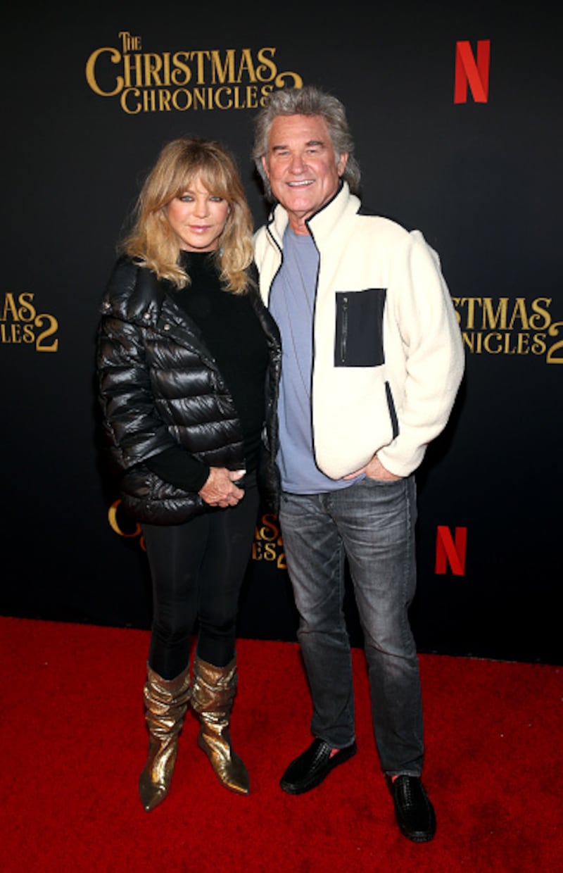 Photos: Goldie Hawn through the years 2020: Goldie Hawn (left) and Kurt Russell attend Netflix's "The Christmas Chronicles: Part Two" Drive-In Event at The Grove on November 19, 2020, in Los Angeles. (Jesse Grant/Getty Images for Netflix)