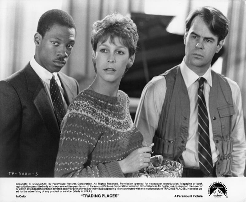 Through the years NEW YORK - 1983: L-R Eddie Murphy, Jamie Lee Curtis and Dan Aykroyd in a scene from the Paramount Pictures movie 'Trading Places' in 1983 in New York City, New York. (Photo by Paramount Pictures/Getty Images) (Michael Ochs Archives/Moviepix/Getty Images)