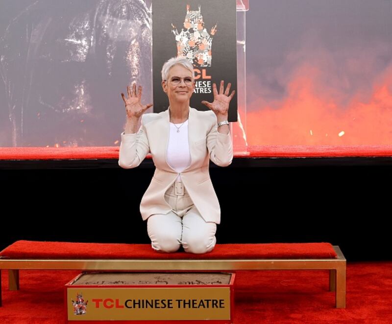 Through the years HOLLYWOOD, CALIFORNIA - OCTOBER 12: Jamie Lee Curtis poses after putting her hands in cement during the Jamie Lee Curtis Hand and Footprint In Cement Ceremony at TCL Chinese Theatre on October 12, 2022 in Hollywood, California. (Photo by Kevin Winter/Getty Images) (Kevin Winter/Getty Images)