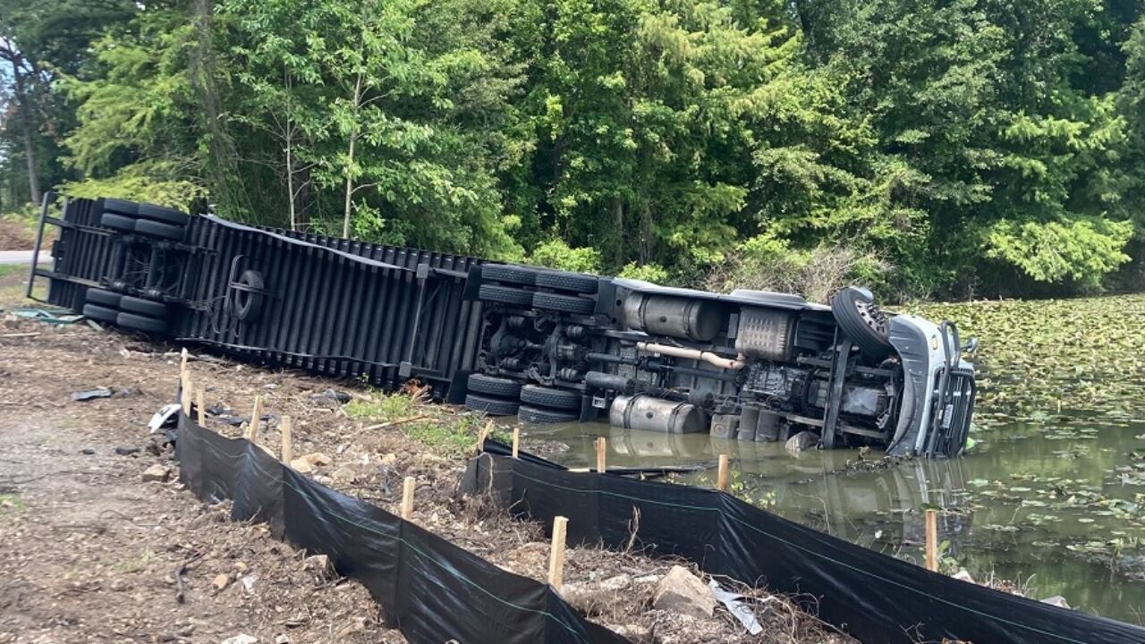 According to a Facebook post from the Arkansas Game and Fish Commission, the semi was lying on its side in Lake Conway in Faulkner County around 3 p.m. CDT.