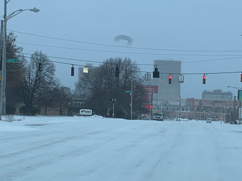 WHBQ reported that thousands of people were without power in the Memphis area. KOKI was seeing slick spots in the Tulsa, Oklahoma, area but roads were improving.