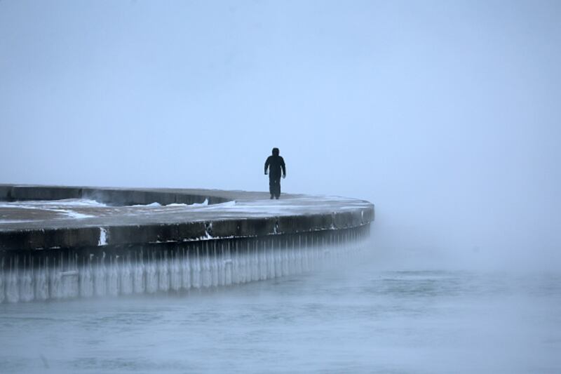 Winter weather CHICAGO, ILLINOIS - DECEMBER 23: A man walks along Lake Michigan at sunrise as temperatures hover about -8 degrees on December 22, 2022 in Chicago, Illinois. Sub-zero temperatures are expected to grip the city for the next couple of days with wind chill temperature dipping as low as -40 degrees. (Photo by Scott Olson/Getty Images) (Scott Olson/Getty Images)