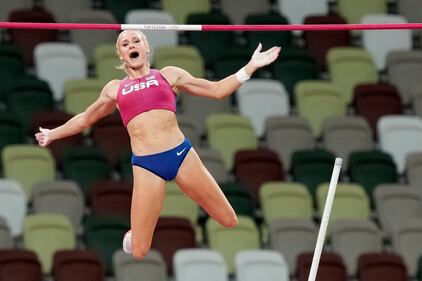 Photo: Katie Nageotte wins Olympic gold in women's pole vault Katie Nageotte, of the United States, competes in the finals of the women's pole vault at the 2020 Summer Olympics, Thursday, Aug. 5, 2021, in Tokyo. (AP Photo/Martin Meissner)