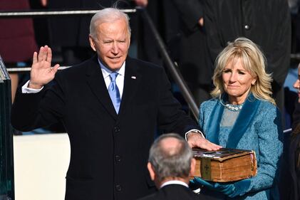 Inauguration Joe Biden is sworn in as the 46th president of the United States by Chief Justice John Roberts as Jill Biden holds the Bible during the 59th Presidential Inauguration at the U.S. Capitol in Washington, Wednesday, Jan. 20, 2021.(Saul Loeb/Pool Photo via AP) (Saul Loeb/AP)