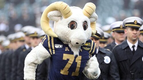 Army v Navy PHILADELPHIA, PENNSYLVANIA - DECEMBER 14: The Navy Midshipmen mascot runs off the field during the march off before the game between the Army Black Knights and the Navy Midshipmen at Lincoln Financial Field on December 14, 2019 in Philadelphia, Pennsylvania. (Photo by Elsa/Getty Images) (Elsa/Getty Images)