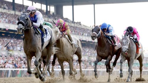 155th Belmont Stakes: Arcangelo, with Javier Castellano up, takes the lead and holds on to win the 155th Belmont Stakes at Belmont Park. (Sarah Stier/Getty Images)