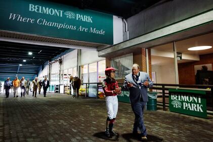 155th Belmont Stakes: Jockey Luis Saez walks toward the paddock after riding Fearless in The True North at Belmont Park. (Sarah Stier/Getty Images)