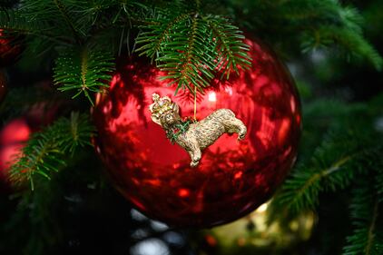 Photos: British PM Rishi Sunak lights Downing Street Christmas tree A novelty bauble is seen on the Christmas tree outside 10 Downing St., ahead of the switching on of the lights on November 28, 2022, in London. (Leon Neal/Getty Images)