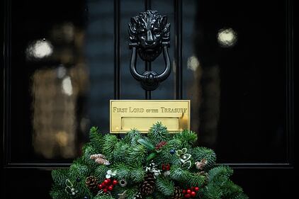 Photos: British PM Rishi Sunak lights Downing Street Christmas tree A detail view of the wreath on the door of 10 Downing St., ahead of the switching on of the Christmas tree lights on November 28, 2022, in London. (Leon Neal/Getty Images)