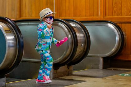 Photos: Fans return for 2021 Belmont Stakes A young horse racing fan arrives at Belmont Park for the 153rd running of the Belmont Stakes horse race, Saturday, June 5, 2021, in Elmont, N.Y. (AP Photo/Eduardo Munoz Alvarez) (Eduardo Munoz Alvarez/AP)