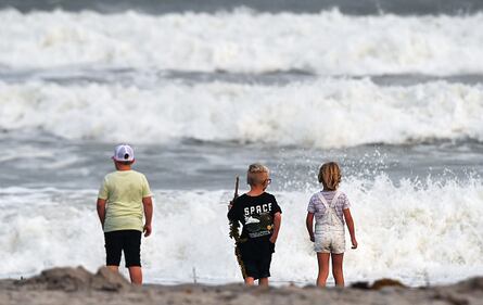 Floridians prep as Tropical Storm Nicole nears landfall Children watch the rough surf at Cocoa Beach, Florida, as Tropical Storm Nicole approaches the east coast of Florida. The storm is on track to strengthen into a category one hurricane by Wednesday, Nov. 9, 2022. (Photo by Paul Hennessy/SOPA Images/LightRocket via Getty Images) (SOPA Images/SOPA Images/LightRocket via Getty Images)