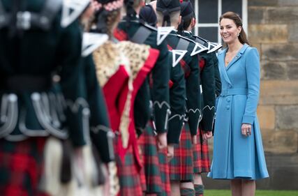 Photos: Kate Middleton, Prince William wrap up Scottish tour with tennis, closing ceremony Catherine, Duchess of Cambridge, meets Highland dancers during a Beating of the Retreat at the Palace of Holyroodhouse on May 27, 2021, in Edinburgh, Scotland. (Jane Barlow-WPA Pool/Getty Images)