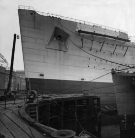 Queen Mary The bows of the new Cunard White Star liner Queen Mary during her construction at the John Brown & Co shipyard, Clydebank. (Photo by General Photographic Agency/Getty Images) (General Photographic Agency/Getty Images)