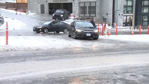 Winter weather Parkway West in Pittsburgh was snow covered Friday morning (WPXI)