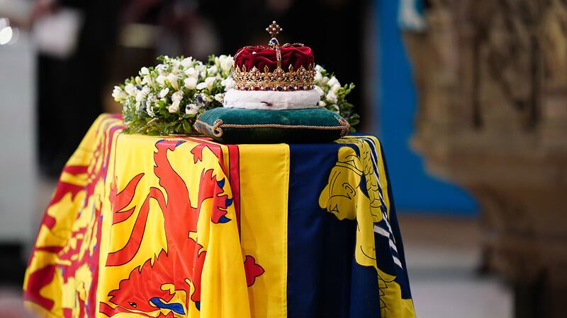 Royal family attends vigil for Queen Elizabeth II The Crown of Scotland sits atop the coffin of Queen Elizabeth II during a Service of Prayer and Reflection for her life at St Giles' Cathedral on September 12, 2022 in Edinburgh, Scotland. (Photo Jane Barlow - WPA Pool/Getty Images) (WPA Pool/Getty Images)