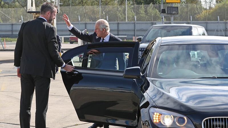Photos: King Charles III visits Northern Ireland The plane carrying King Charles III and the Queen Consort arrives at Belfast City Airport as the King continues his tour of the four home nations on September 13, 2022, in Belfast, United Kingdom. (Liam McBurney - WPA Pool/Getty Images)