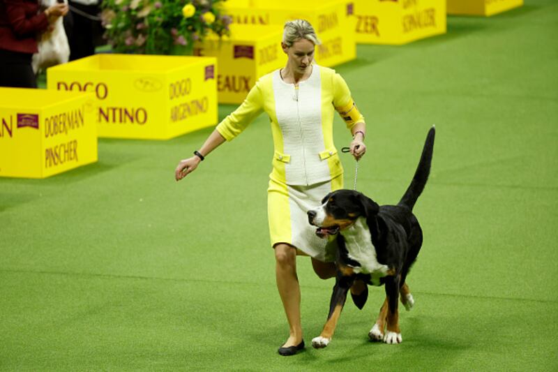 147th Annual Westminster Kennel Club Dog Show Presented by Purina Pro Plan NEW YORK, NEW YORK - MAY 09: A Bernese Mountain Dog competes in the 147th Annual Westminster Kennel Club Dog Show Presented by Purina Pro Plan at Arthur Ashe Stadium on May 09, 2023 in New York City. (Photo by Sarah Stier/Getty Images for Westminster Kennel Club) (Sarah Stier/Getty Images for Westminster Ken)