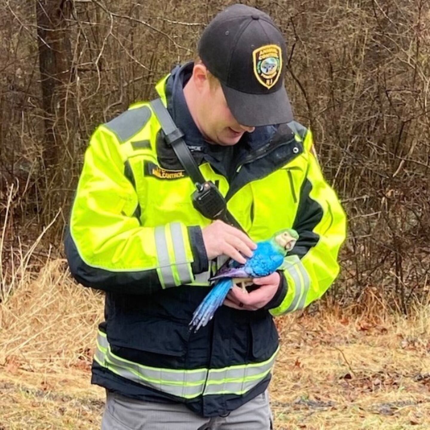 In its Facebook post, the Princeton Police Department shared a photo of Ferry holding the ceramic bird, saying that it “did not appear frightened” and anyone who is missing a ceramic parrot should contact them.