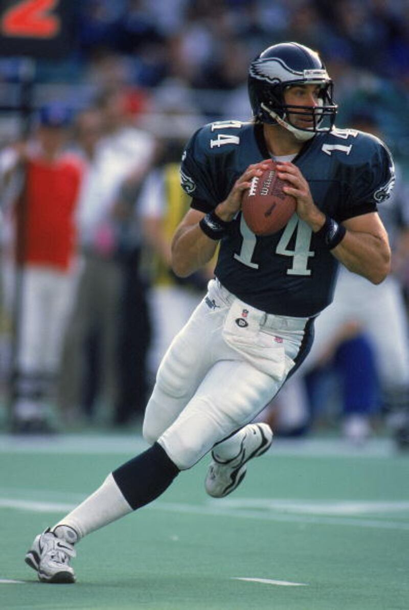 Photos: NFL coach Doug Pederson through the years 1999: Doug Pederson of the Philadelphia Eagles moves to pass the ball during the game against the New York Giants at the Veteran Stadium in Philadelphia on Oct. 31, 1999. The Giants defeated the Eagles 23-17. (Ezra O. Shaw/Allsport via Getty Images)