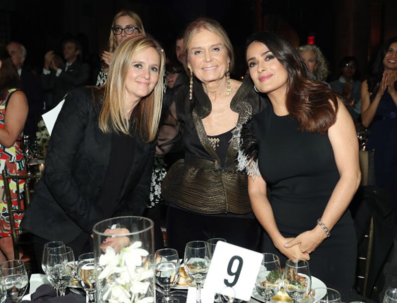 Photos: Samantha Bee through the years 2016: Comedian and WMC History Making Award recipient Samantha Bee, co-founder Gloria Steinem and Salma Hayek Pinault pose at the Women's Media Center 2016 Women's Media awards on September 29, 2016, in New York City. (Cindy Ord/Getty Images for the Women's Media Center)