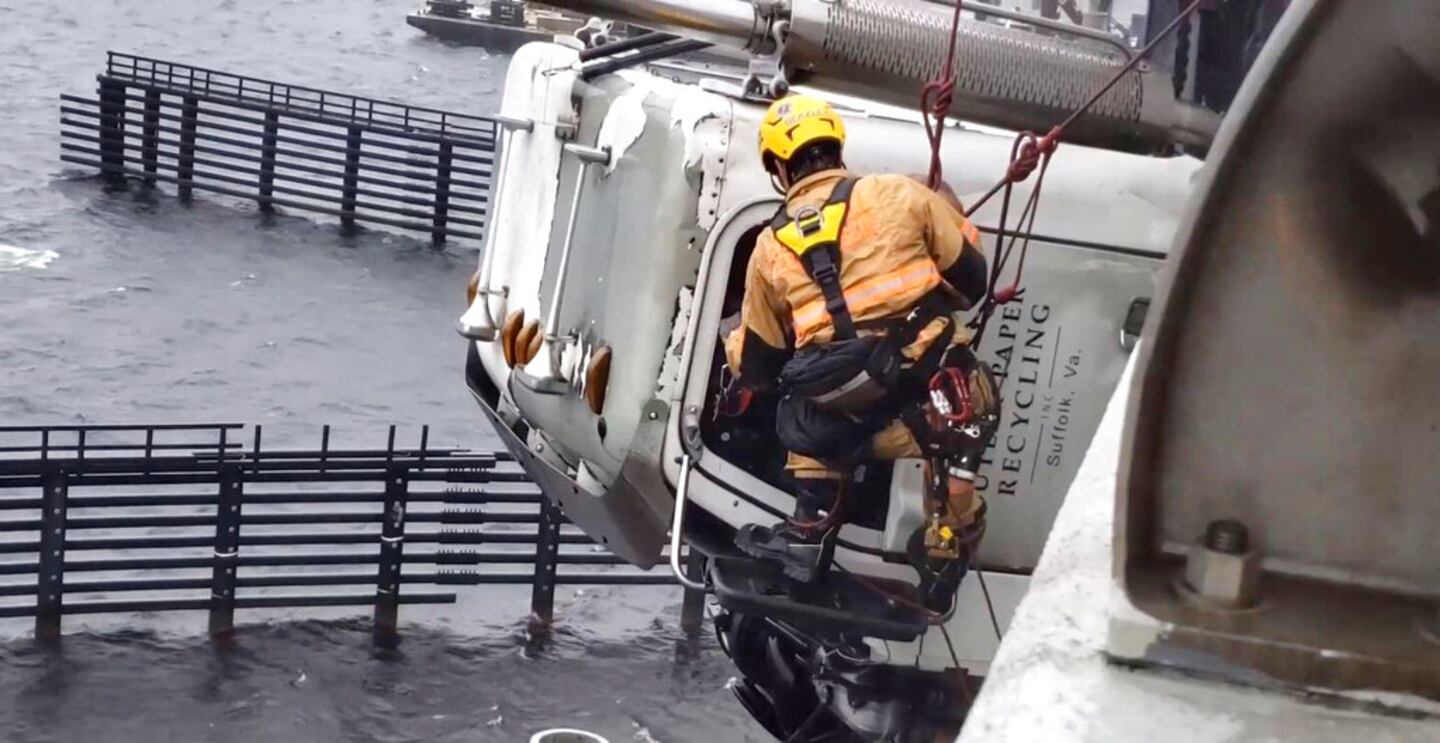 The Chesapeake Fire Department lowered a crewmember over the bridge to connect Boone to a harness and haul him to safety, WAVY reported.