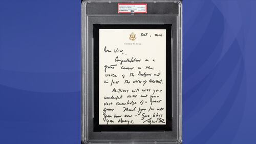Vin Scully collection Vin Scully received a personal letter from former President George H.W. Bush after he called his final game for the Dodgers in 2016. (Hunt Auctions )