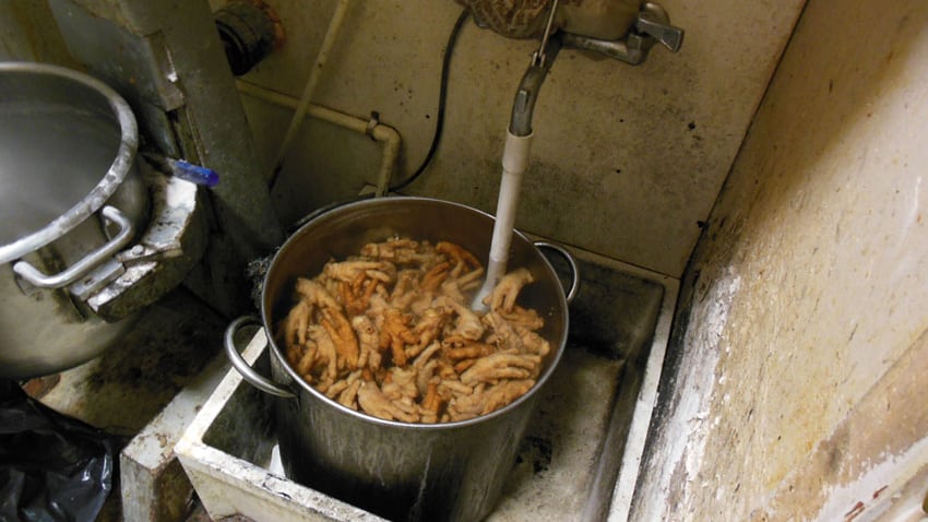 SEATTLE — King County Health inspectors find some nasty things while looking for health code violations --like frozen chicken feet thawing in a filthy mop sink, raw chicken stored in a bucket underneath a dishwashing area or shrimp in a bin on a moldy floor. But a source inside the Health Department tells KIRO 7 some of these violations are going unpunished.