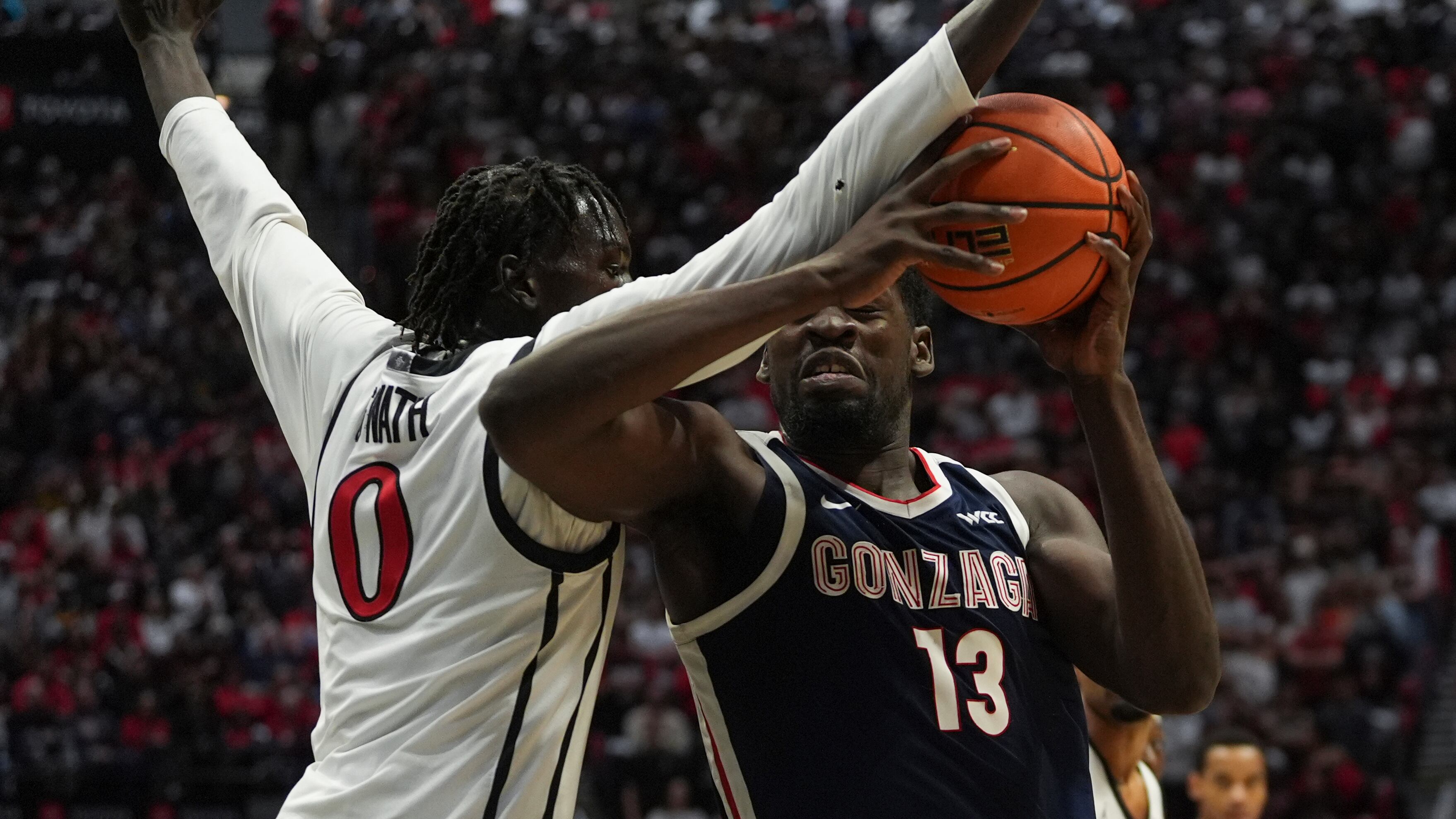 SAN DIEGO — (AP) — Graham Ike bounced back from early foul trouble to score 20 of his 23 points in the second half, and Ryan Nembhard added 19 points and 10 assists as No. 3 Gonzaga ran past San Diego State 80-67 on Monday night in a showdown of future Pac-12 opponents.