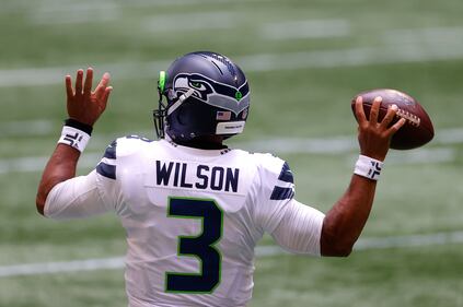 Seattle Seahawks v Atlanta Falcons ATLANTA, GEORGIA - SEPTEMBER 13: Russell Wilson #3 of the Seattle Seahawks warms up prior to facing the Atlanta Falcons at Mercedes-Benz Stadium on September 13, 2020 in Atlanta, Georgia. (Photo by Kevin C. Cox/Getty Images) (Kevin C. Cox/Getty Images)