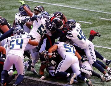 Seattle Seahawks v Atlanta Falcons ATLANTA, GEORGIA - SEPTEMBER 13: Todd Gurley II #21 of the Atlanta Falcons dives for a touchdown in the first half against the Seattle Seahawks at Mercedes-Benz Stadium on September 13, 2020 in Atlanta, Georgia. (Photo by Kevin C. Cox/Getty Images) (Kevin C. Cox/Getty Images)