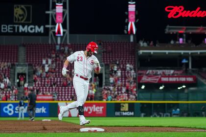 Christian Encarnacion-Strand Cincinnati Reds' Christian Encarnacion-Strand hits a winning RBI single during the ninth inning of a baseball game against the Seattle Mariners in Cincinnati, Tuesday, Sept. 5, 2023. (AP Photo/Aaron Doster) (Aaron Doster/AP)