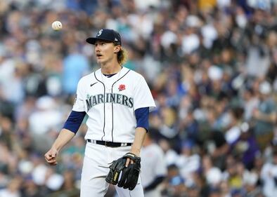 Seattle Mariners starting pitcher Bryce Miller throws a ball in the air after giving up a home run to New York Yankees' Jake Bauers during the fourth inning of a baseball game Monday, May 29, 2023, in Seattle. (AP Photo/Lindsey Wasson) (Lindsey W/Lindsey Wasson, Associated Press)