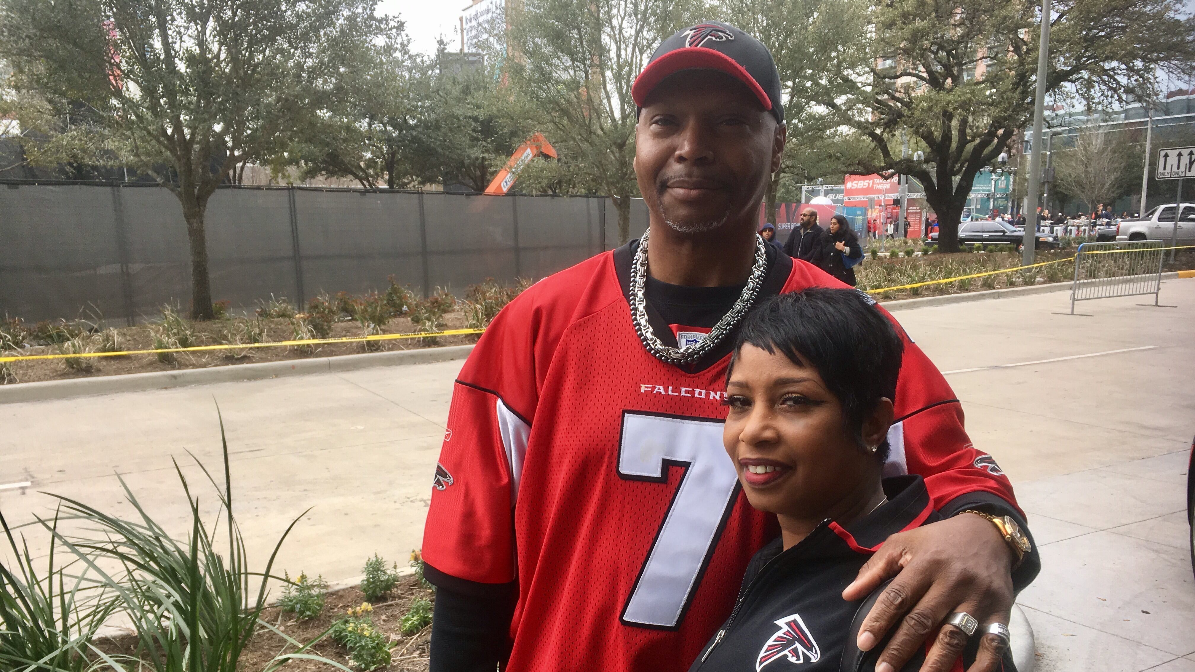 Terry Kelley of Stockbridge, who's here with his wife Yolanda for the game, sported his Vick jersey the day before the game. (Not that he isn't a Matt Ryan fan. He'll wear what he called his "updated jersey" to the Super Bowl itself.)